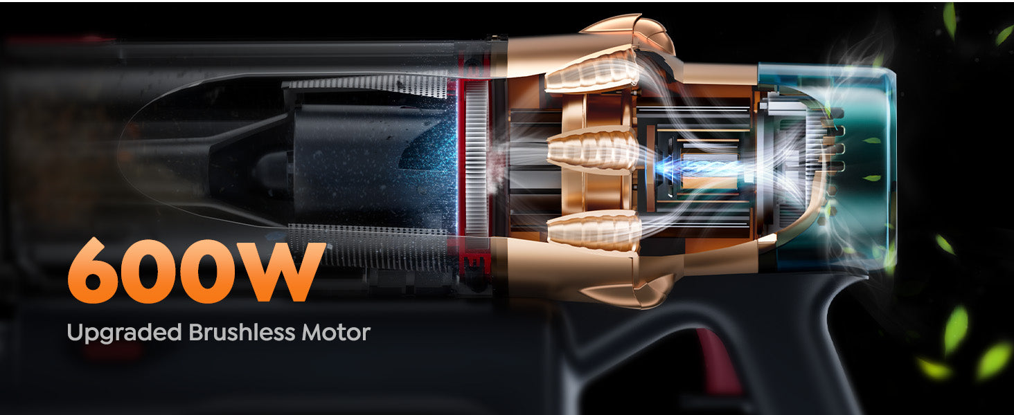 š[Upgraded 600W 50KPA Powerful Suction] The cordless vacuum cleaner is equipped with a market-leading 600W brushless motor, which can provide 50KPA powerful suction to pick up all surface debris and deeply embedded dirt, beating 95% of the vacuum cleaners on the market!